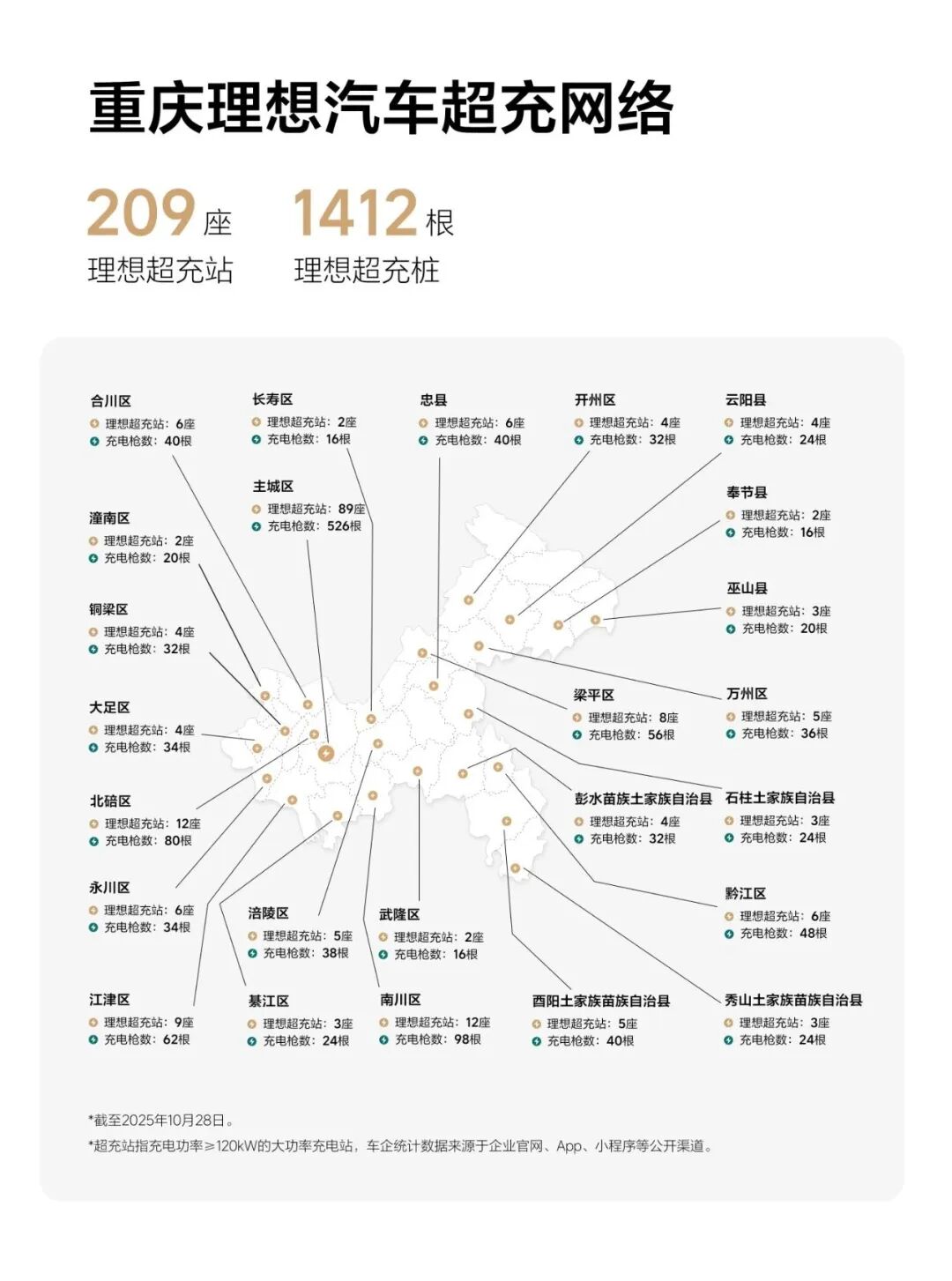 目前,重庆的理想超充站正式突破200座大关,重庆也成为了全国首个理想超充突破200站的城市。主城核心区域,平均3公里1座理想超充站;重庆高速,平均37公里1座理想超充站。理想超充的“多、快、好、省”,正在重新定义重庆车主的出行方式。