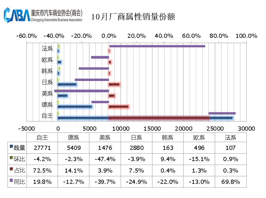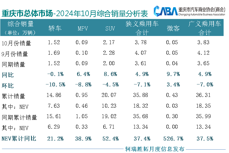 10月份,国内车市一片大好,那么重庆车市表现如何呢?数据显示,重庆市场狭义乘用车10月份销量为3.78万辆,同比增长4.9%,环比下滑7.1%。