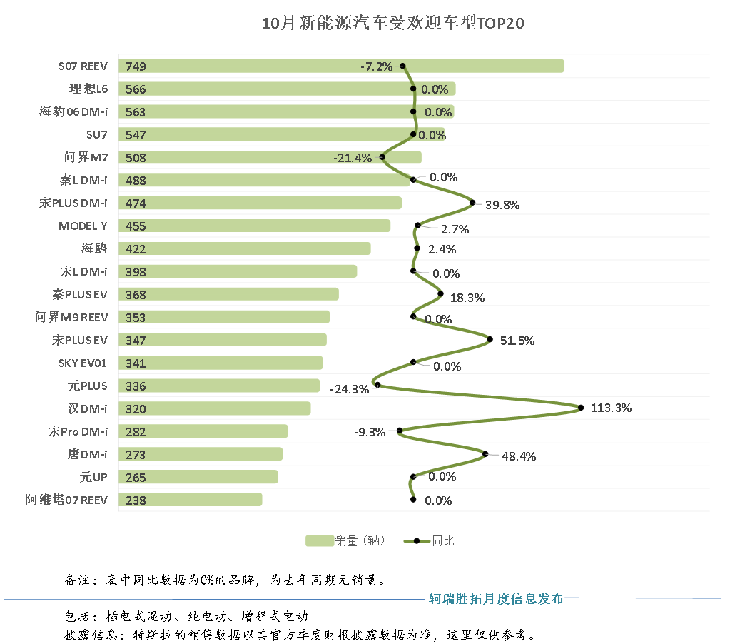 从厂商属性来看,中国品牌10月销量超2.77万辆,同比增长19.8%,市场占比达72.5%,继续保持领先优势;德系品牌10月销量达0.54万辆,同比下滑12.7%,占比达14.1%;美系品牌10月销量达0.14万辆,同比下滑39.7%,占比达3.9%。日系品牌10月销量0.28万辆,同比下滑24.9%,占比达7.5%。相比之下,韩系、欧系、法系销量继续低迷,市场占比为2%。